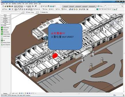 ④门禁系统:通过BIM的空间技术,门禁系统可以远程对大门的关闭开启进行控制,并可调用较近的摄像探头对现场情况进行观察。