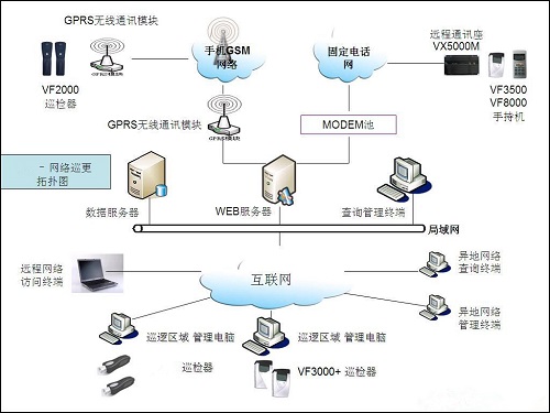 巡逻人员手持巡检器,沿着规定的路线巡查。同时在规定的时间内到达巡检地点,用巡检器读取巡检点,工作时伴有振动和灯光双重提示。巡检器会自动记录到达该地点的时间和巡检人员,然后通过数据通讯线将巡检器连接计算机,把数据上传到管理软件的数据库中.管理软件对巡检数据进行自动分析并智能处理,由此实现对巡检工作的科学管理